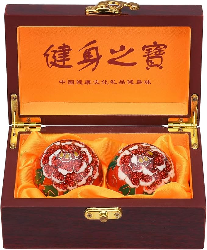 1.97'' Chinese Baoding Balls Hand Exercise Massage Balls with Box Red Rose Pattern Balls with Chimes Parents Gift TQZDBS71